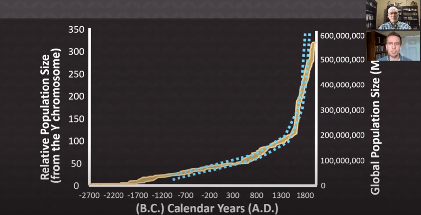 Lastly, Jeanson explains that the branches on a family tree reflect population size, and it’s possible to construct a global family tree by using DNA and placing it on a graph. This results in a ‘hockey stick’ graph of human population growth, and this is acknowledged by evolutionists. This hockey stick shape is what the global human family tree looks like when using the Y Chromosome. But this shape shouldn’t exist if the global family tree is hundreds of thousands of years old. On the other hand, if the global family tree is about 4,500 years old, then this is the shape we’d expect to see. Jeanson calls this discovery positive evidence for creation and smoking gun. He made a testable, scientific prediction, and there it is, stamped throughout the global family tree.