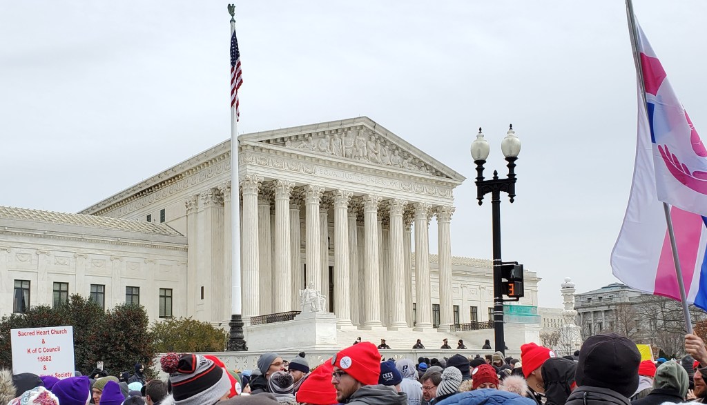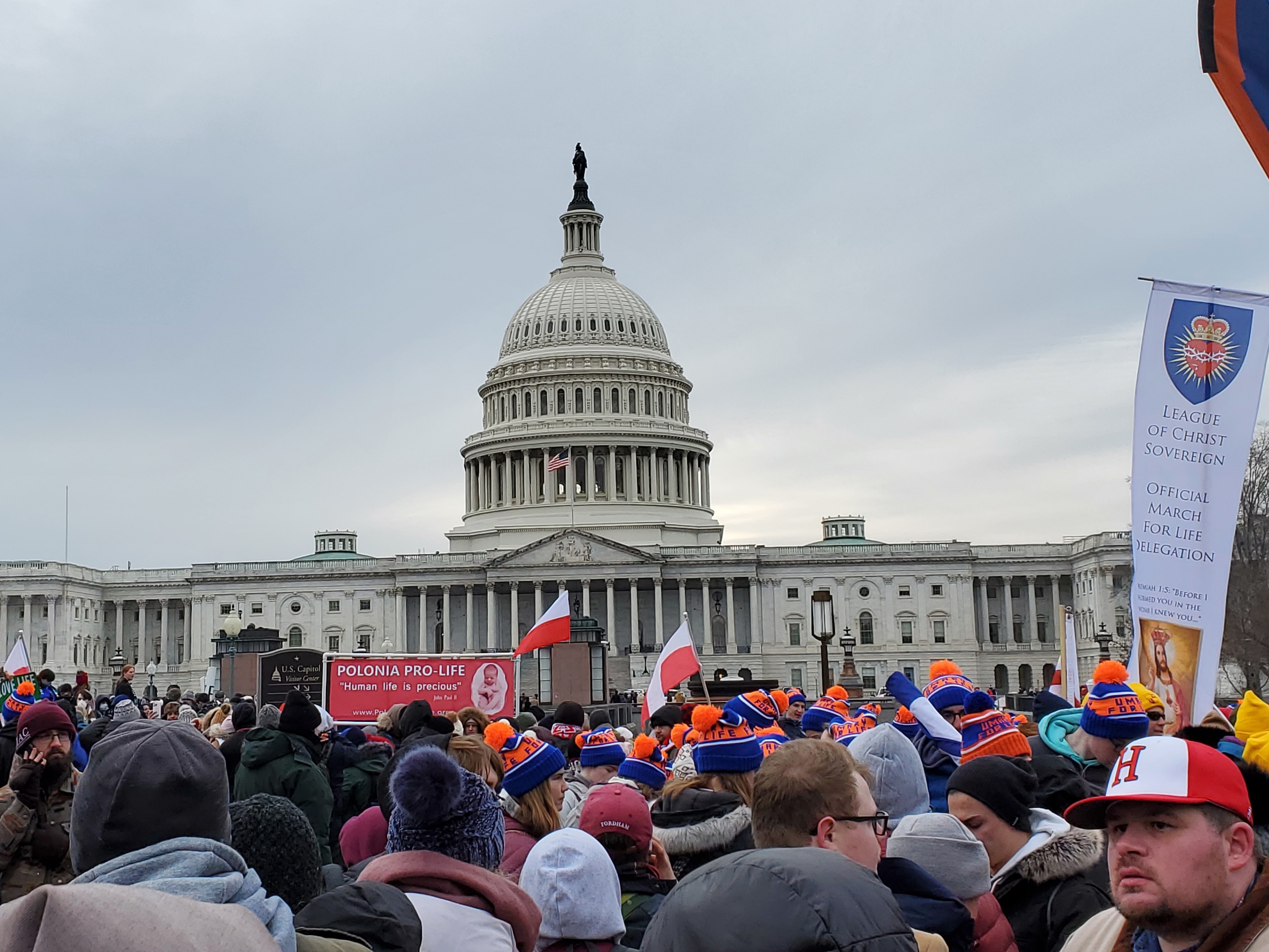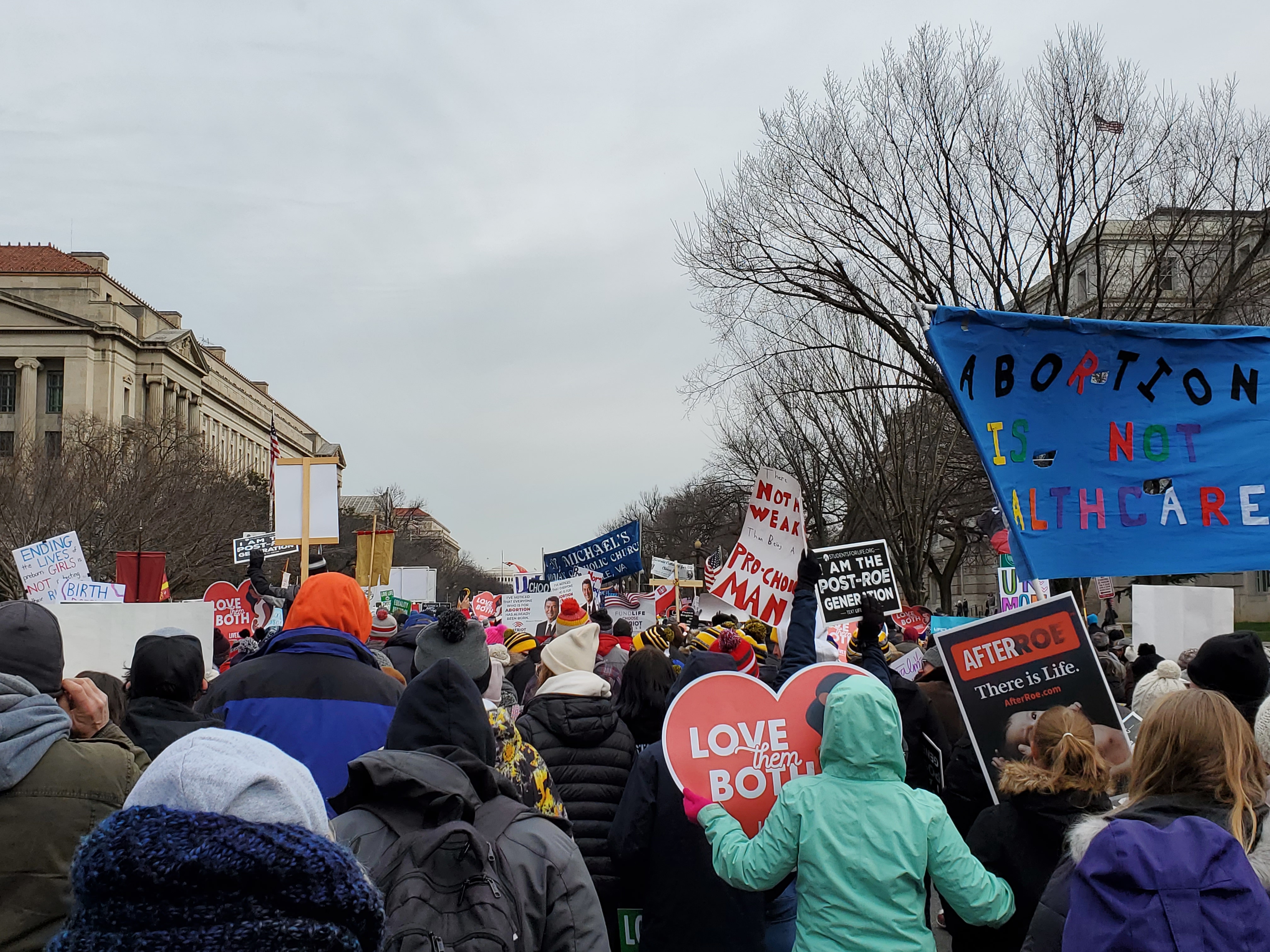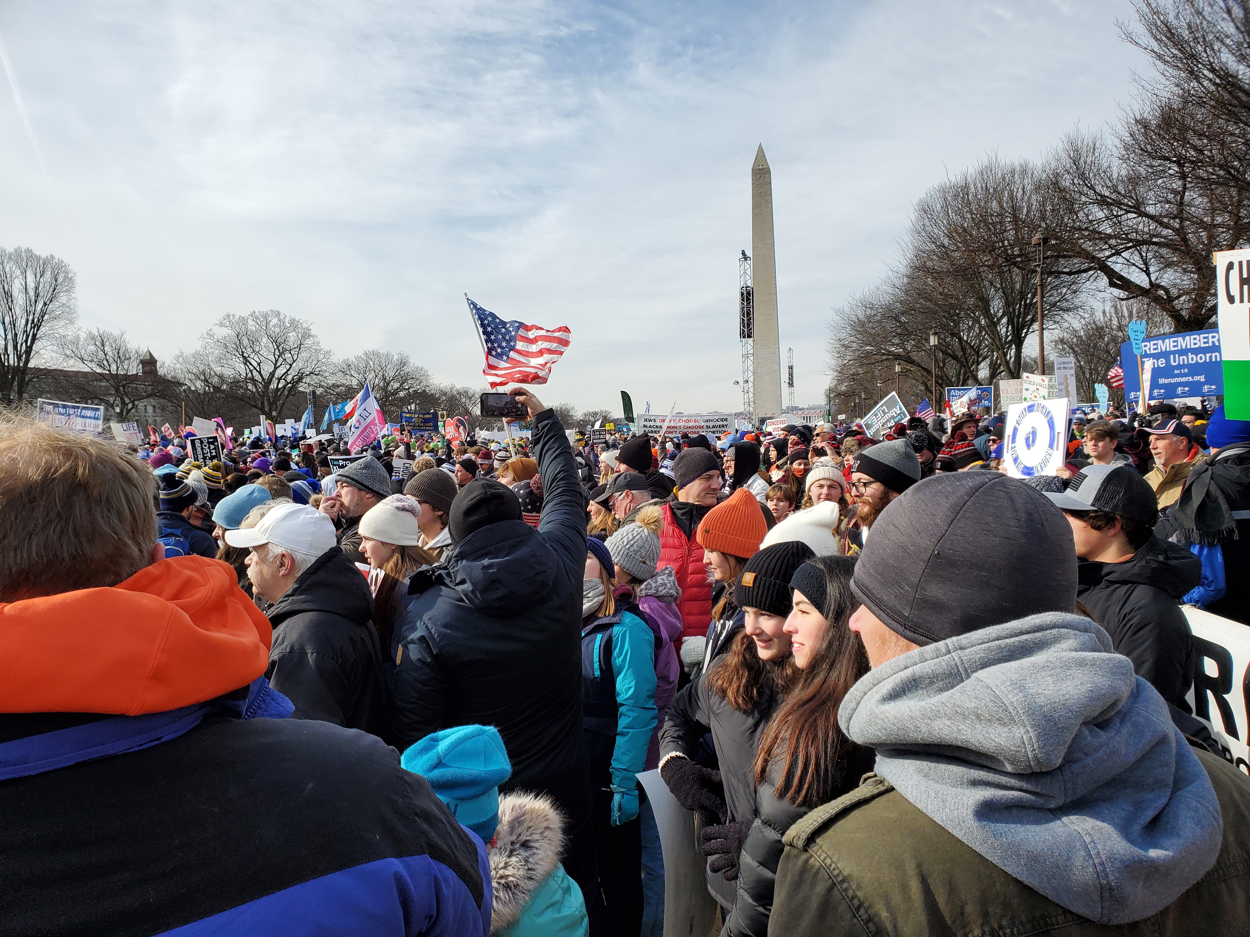 I made the trek down to Washington, D.C for the 49th anniversary of Roe v. Wade. The weather was frigid, getting up to about 25 degrees. Gloves, a heavy coat and a ball cap weren’t enough to stop the cold. Hand and toe warmers, and a hood to cover my ears were in order. Fortunately the snow and cold couldn’t keep a crowd of about 100,000 pro-life supporters from rallying and marching from the Mall up to the Supreme Court.