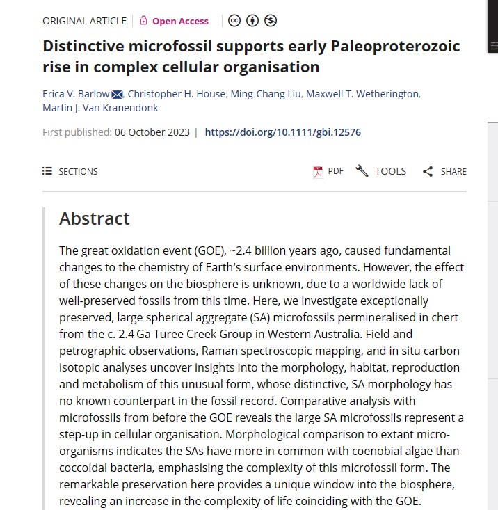 However, when we take a closer look, there’s a lot of backtracking, and less certainty. We learn that these microfossils were found in Australia and resemble a more complex type of life, like algae, rather than a simple prokaryote, like bacteria. In fact, Professor Erica Barlow said, “The microfossils have a remarkable similarity to a modern family called Volvocaceae.”